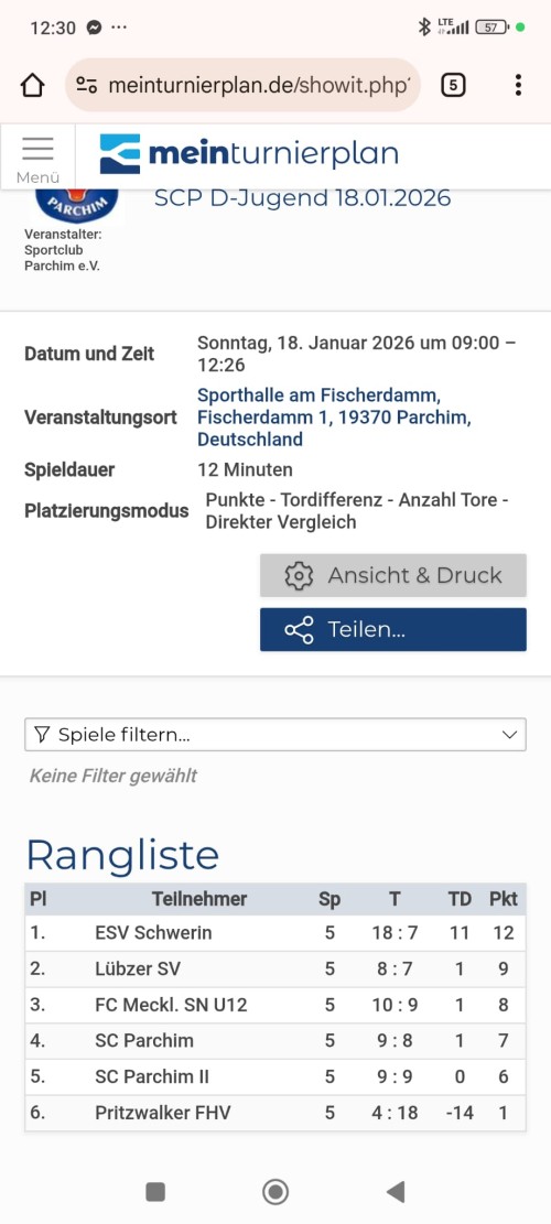 D1: Turniersieg beim SC Parchim am 18.01.2026 Gallerie