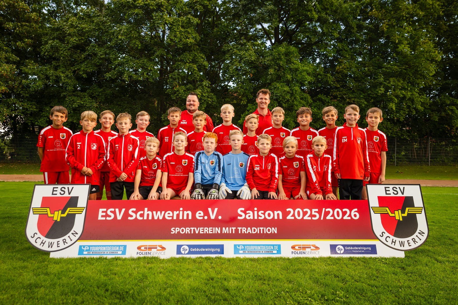 Unsere E1-Junioren des Jahrgangs 2015 spielen in der Saison 2025/2026 in der Kreisoberliga unseres Kreisfußballverbandes Schwerin/Nordwestmecklenburg. Dies ist gleichzeitig die höchste Spielklasse in unserem Einzugsgebiet. Team-Ausstatter: "Zahnarztpraxis Dr. Imke Segler und Nele Quandt".