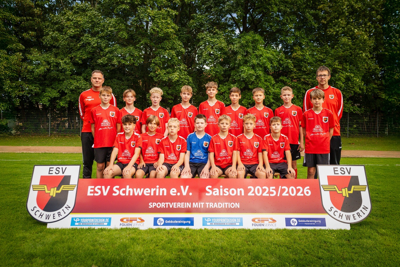 Unsere D1-Junioren des Jahrgangs 2013 spielen in der Saison 2025/202 in der WEMAG-Liga D-Junioren Staffel I, der zweithöchsten Spielklasse unseres Bundeslandes. Team-Ausstatter: "VOSS-Seminare"